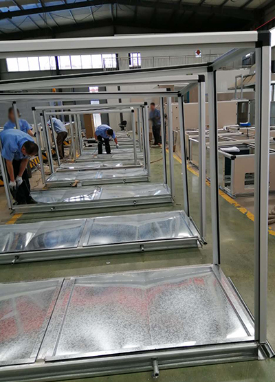 河南項目某文化體育中心訂購大商的屋頂式、落地式、吊裝式熱回收空調機組第二批貨正井然有序的生產制作中!